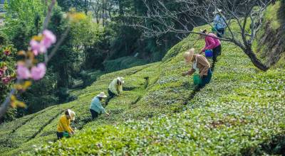 走进梯田状的茶叶古,茶芽新绿挤满枝头,青翠欲滴。与远处的青山、村落、盛开的樱花,以及劳作的茶农们勾勒出一幅幅田园风光画,到处洋溢着春天的气息。据悉,茶叶谷,位于英山县杨柳湾镇东部万亩茶园地带,是以烂柴河村为中心,覆盖周边金鸡岭、宋家榜等13个行政村,形成集聚效应的生态产业基地。现有标准化茶园1170亩,户均茶园面积达到4.7亩,茶叶产量已初具规模。