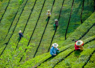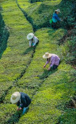 清明时节,茶芽吐翠。2025年4月8日,湖北黄冈英山县杨柳湾镇茶叶谷春茶迎来采摘季,茶农们正穿梭于生态茶园娴熟地采摘下今年的嫩芽。