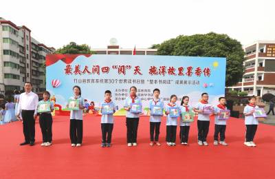 让读书成为习惯,让书香溢满校园。4月22日,湖北省竹山县教育系统第30个“4·23世界读书日”暨“整本书阅读”成果展示活动在宝丰镇施洋小学举行。该校学生们精心制作的读书手抄报、读后感等作品,展现出日常阅读积累的丰硕成果;县新华书店“好书推荐展”琳琅满目的书籍,吸引着同学们驻足翻阅;师生自编自导自演的诵读节目将现场活动氛围推向高潮。
