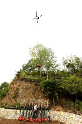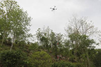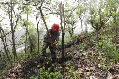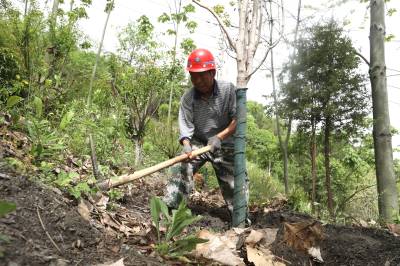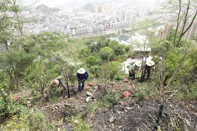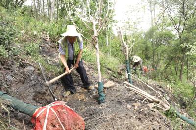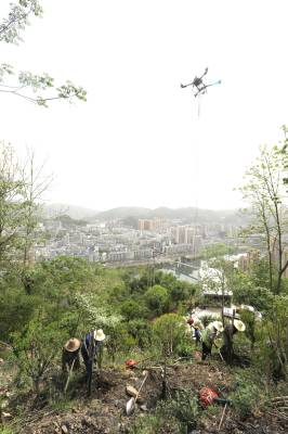 在栽植现场,各个专班分工明确、协同作战。工人们干劲十足,采用无人机运送苗木,有的挥锹挖坑,有的扶正树苗,有的填土浇水,每一个环节都一丝不苟。一株株新栽下的苗木顺山势错落有致,在和煦的春风中展现出蓬勃的生命力,仿佛在诉说着对这片土地的热爱与期待。