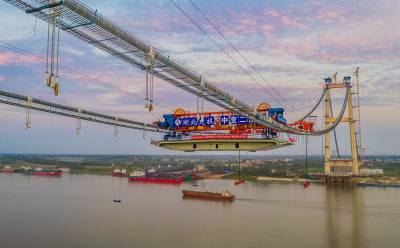 2025年6月13日下午,随着缆载吊机的精准操作,双柳长江大桥首节钢箱梁被稳稳吊起并精确安装至预定位置,标志着由湖北交投集团投资建设,中交二航局与中铁大桥局集团联袂施工的双柳长江大桥正式进入主桥钢梁施工阶段。