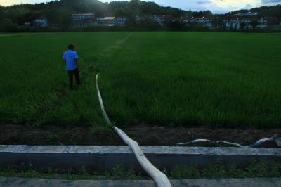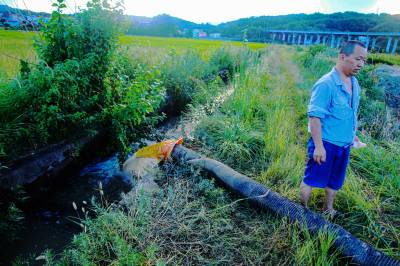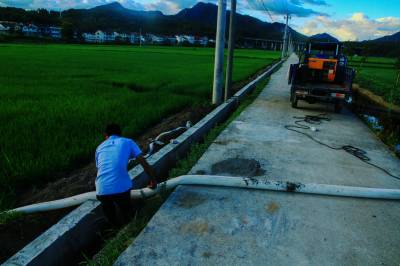 湖北英山:抗旱抽水灌溉忙 2025年7月21日,湖北英山县满溪坪良种场工作人员正在为600亩中稻田抽水灌溉。眼下正是中稻生产关键时机,为克服连日来高温天气带来的不利影响,确保水稻丰产丰收,该场及时组织调配抗旱机械,缓解满溪坪大畈旱情,开展抗旱保墒,确保粮食安全。