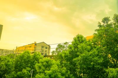 2025年8月3日,雨后晚霞映照山城,湖北英山县城呈显出旖旎动人的黄昏景象。