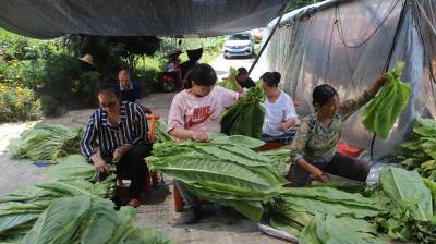 “种烟大户赚大钱,我们娘子军捡小钱。在家门口做事,比在外打工强。”正在穿烟的王大姐接过话题说。