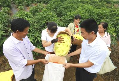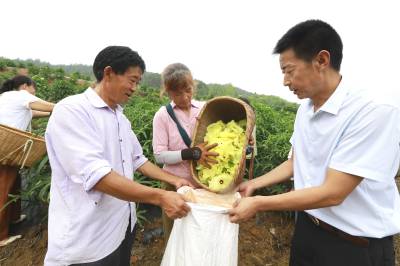 2025年,深沟村采取“党支部+合作社+生态农场+农户”种植方式,发展黄蜀葵50亩。据介绍,黄蜀葵作为一种中药材,其根、叶、花及种子药用价值较高,其花更是肾病药物“黄葵胶囊”的主要原料。黄蜀葵适应能力强,易管理,生长周期短,每年清明节前后种植,两个多月后即可采花晒干售出,花期从7月持续到9月,年亩产值达5000元以上。黄蜀葵全身都是宝,夏秋季节可采摘叶和花,秋季可挖根、收种子,也可实现一年种多年收,第二年开花产量更大。“黄蜀葵鲜花每天都会开一茬,当天上午必须及时采摘,否则花朵会凋谢。”张生均说。他的身后,村民们正将一袋袋已经装好的黄蜀葵抬到集中收运点,称重、装车,运往加工厂。