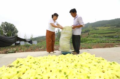 更让村民惊喜的是,黄蜀葵采摘期虽长,但劳动强度不大。55岁的王友梅边采花边笑着说:“早上采花四小时,能挣六十多块,下午还能照顾孙女。”“黄蜀葵花的寿命只有一天,必须当天烘干。”生态农场负责人张生均打开烘箱查看成色,“鲜花水分含量高,十斤鲜花才能出一斤干花,但干花价格能翻二十多倍。”