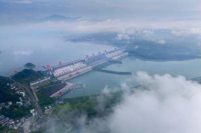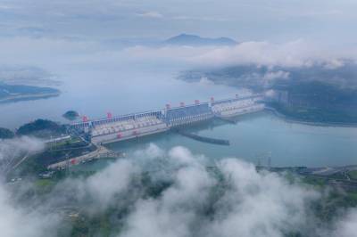 湖北宜昌:三峡坝区云雾美