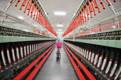 8月12日,在宜城市天舒纺织有限公司,所有生产线一排繁忙,企业正全力冲刺年产1万吨纱,4亿元目标,该目标比去年增长25%。该企业现有规模12万枚纱锭,主要从事高档纯棉纱线的生产与销售。公司职工,430余人。在业内享有“湖北第一纱”的美誉,是华中地区最优质的纱线制造商。