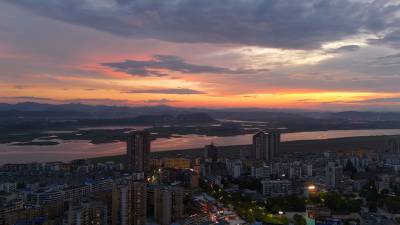 郧阳城区汉江晚霞在不同季节呈现出多样的魅力。