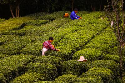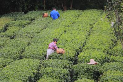 > 湖北英山长冲茶场:秋季手工采摘忙
