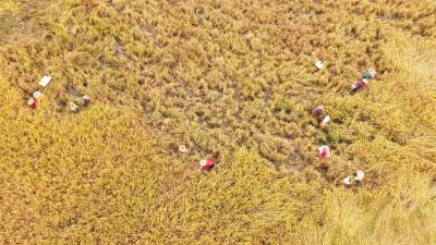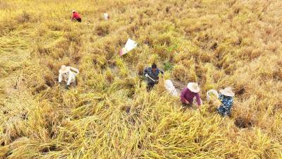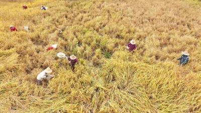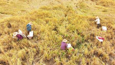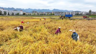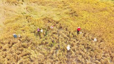 房县:抢收秋粮 2025年9月25日,十堰市房县军店镇上茅坪村连片的水稻喜获丰收,当地群众加紧抢收。近期,受连续降雨影响,房县部分底洼农田不同程度积水,造成机收水稻困难。为确保到手的秋粮颗粒归仓,当地组织青壮年劳力,下田收割稻穗,集中脱粒、晾晒、烘干。目前,该县近7万亩水稻收割进入尾声。 视界网 张启龙 摄 湖北省十堰市房县水利和湖泊局 张启龙 邮编:442100 电话:0719-3233769 手机:13997816718