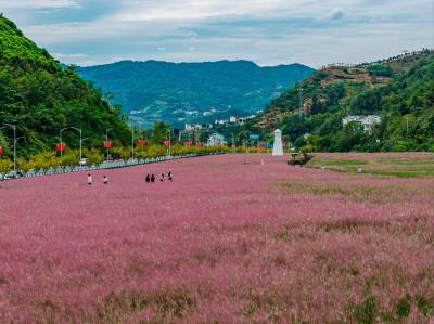 据悉,2022年底,竹山县在建设鱼岭2号隧道时,将隧道开挖产生的数十万方渣土科学规划,集中堆放于附近的荒沟中预留备用。上庸镇巧妙利用这些废弃渣土作为种植基土,成功打造出这片梦幻的粉黛乱子草花海。盛花期时,如烟似雾的粉紫色花穗与翠绿叶片相映成趣,远望如云似锦,近观轻盈曼妙,为车行公路增添了一抹柔美的色彩。