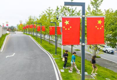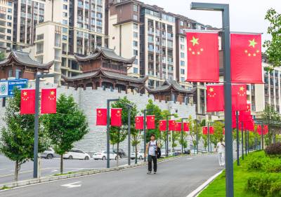 房县: 装扮一新迎国庆 满城飘扬“中国红”