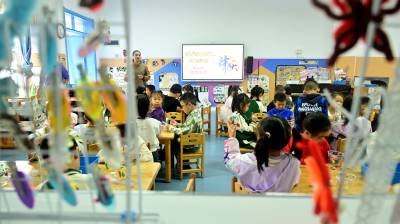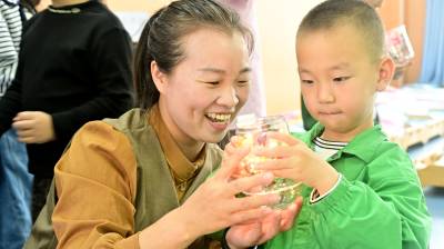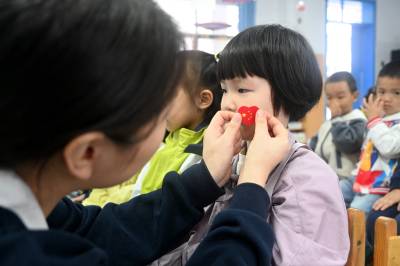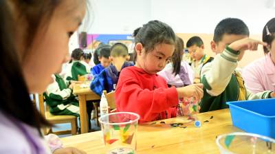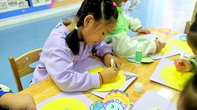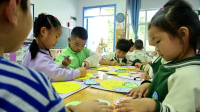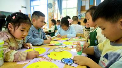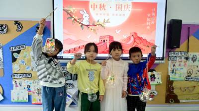 国庆、中秋“双节”来临,全国各地的大朋友、小朋友用自己的方式“绘”国庆、中秋。9月29日在湖北省十堰市郧阳区郧阳滨江新区幼儿园,幼儿在老师的指导下自己动手制作手绘粘贴画、手工灯笼、水中捞月游戏等方式庆祝国庆、中秋节,既了解了国庆、中秋知识和习俗,又锻炼了动手能力。视界网王涛摄
