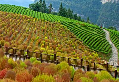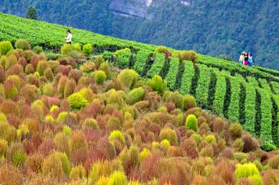 湖北恩施:地肤草披“秋装”迎客来(客户端采稿)