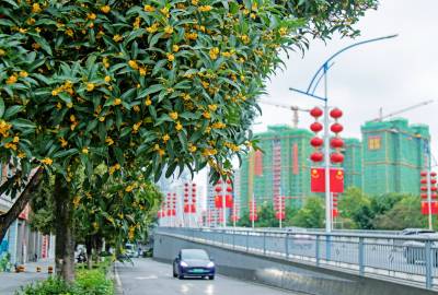 湖北襄阳:街头闪耀中国红(客户端采稿)