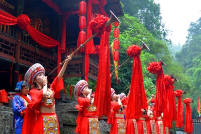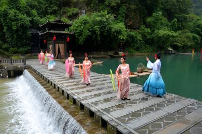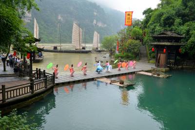 该景区以青山绿水实景为舞台,将峡江号子等非遗融入游览路径,多项非遗轮番展演,以及土家抢亲、哭嫁等民俗演出,多彩文旅融合场景让游客沉浸式体验三峡地域文化,景区亦化作一座大型非遗博物馆。