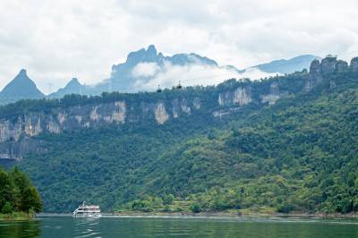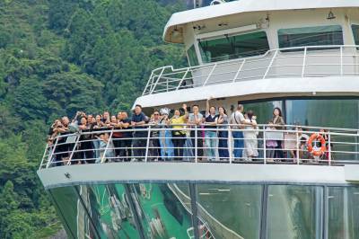 10月4日,恩施市新塘乡红花峰林景区风,游客乘坐游船畅游恩施大清江。 金秋时节,恩施市新塘乡红花峰林景区风景如画,吸引大量游客纷至沓来,畅游大清江,感受山水之美,乐享国庆假期。