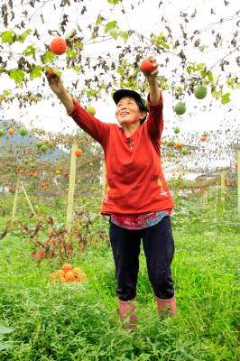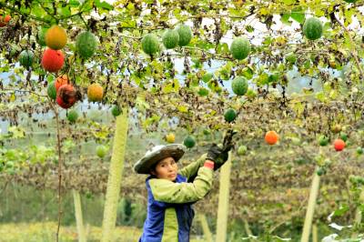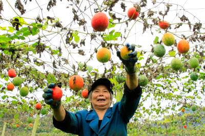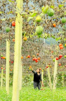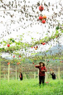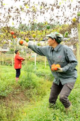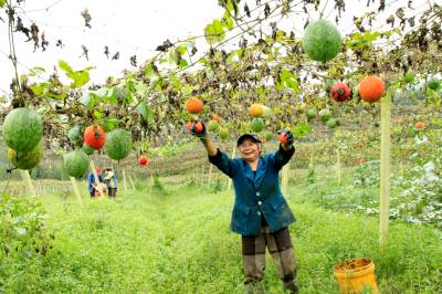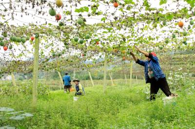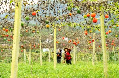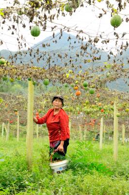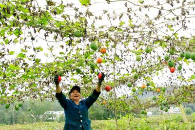2025年10月5日,十堰市房县化龙堰镇渭沟村千亩中药材产业园,当地农民正在采摘吊瓜。