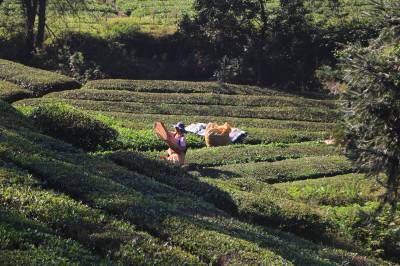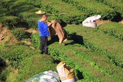 2025年10月6日,中秋佳节,正是采收秋茶好时节。湖北省英山县温泉镇黄柏山村茶农趁天气晴朗加紧采收秋茶。 近年来,英山县从加强科技创新引领,培育壮大经营主体,支持健康茶园建设,支持市场开拓等方面,支持茶产业提质增效,促进茶农增收、茶企增效。