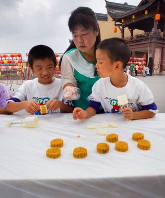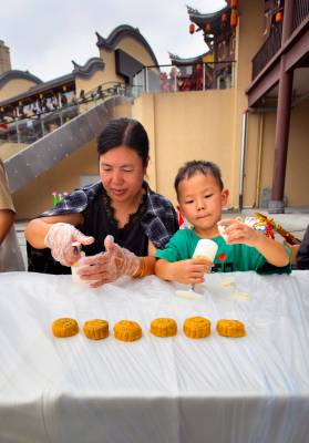 2025年10月6日,农历八月十五中秋节,屈原故里湖北省宜昌市秭归县九歌巷子举办“DIY月饼”中秋主题文化活动,小孩子在家长的指导下学习手工制作月饼,在提高动手能力的同时,感受中国传统文化的魅力。