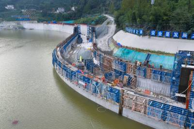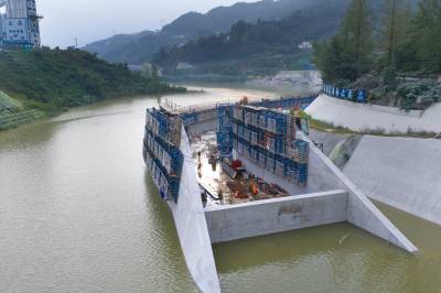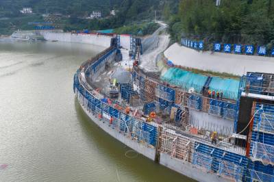 2025年10月7日,位于三峡库区湖北省宜昌市夷陵区太平溪镇的南水北调·引江补汉取水口排导渠施工现场一派繁忙。引江补汉取水口排导系统被设计为“人工运河”——排导渠+排导洞,专门引导龙潭溪绕开取水口入江,以避免龙潭溪对取水口的干扰。