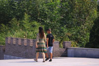 2025年10月8日,游客来到位于白莲河上游的湖北省英山县方家咀乡千斤坪景区游览休闲,欣赏湖光山色、湿地景观,其乐融融。