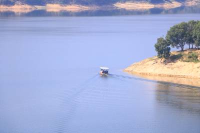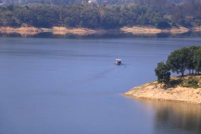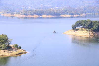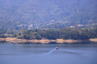 站在高高的观景台上眺望,一望无垠的河水在蓝天白云下,碧波万顷,寥廓无比,气象万千。到水上泛舟,欣赏“一川新涨熨秋光”的意境,身心顿觉放松。白莲河素来物产丰富,水秀山美,自是山里河畔老百姓取用不尽的山水宝库,宛如一幅徐徐铺展的山水长卷。