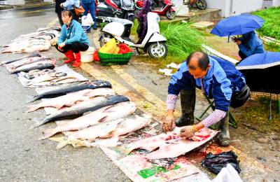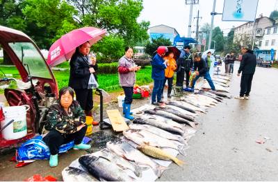 2025年10月7日,南水北调中线工程水源区,丹江口市丹江口水库大坝增加8孔泄洪,这是自9月25日首次开闸泄洪后,10月4日以来为迎战第5次洪峰,丹江口水库大坝再次加大出库流量的泄洪。同时也让大坝之下汉江两岸的人们争先恐后的在江边捡鱼。由于泄洪水流湍急,许多库内的鱼都被撞昏撞死。每天汉江两岸的各个临时鱼市上,通常的鱼都是七八十斤,带动鱼市兴旺。