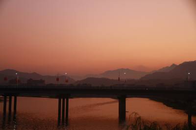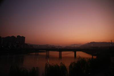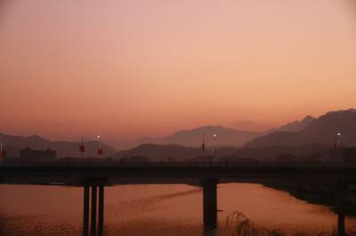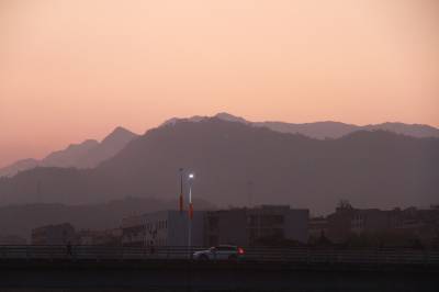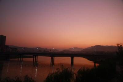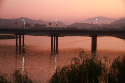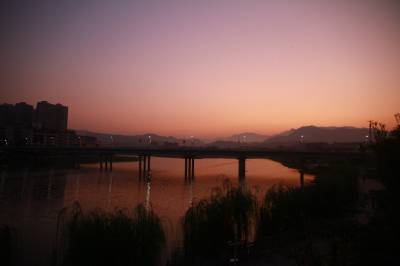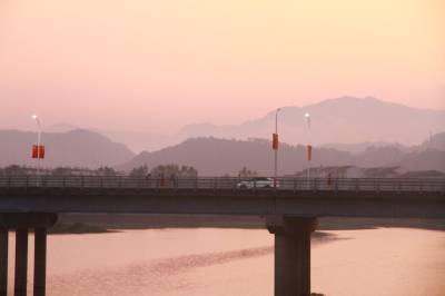2025年10月9日,寒露成霜,氤氲深秋,晨曦微露时,湖北省英山县城南大桥,绯红晨曦把河水染得金光闪闪、波光粼粼,朝晖和薄雾将层层叠叠的远山和鳞次栉比的楼厦勾勒得若隐若现,仿佛为其披上了一层闪耀的纱衣,近处的树木披上银白露珠,行人穿梭其中,恍如步入一幅水墨长卷。