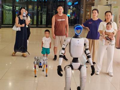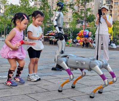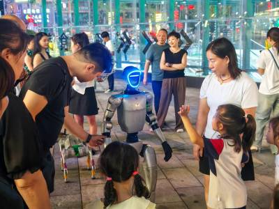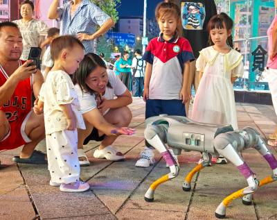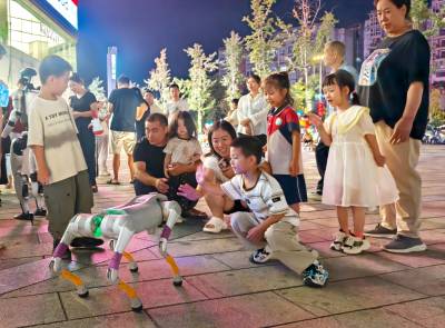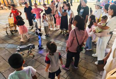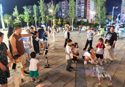 湖北恩施:机器人和机器狗街头“炫酷”引围观