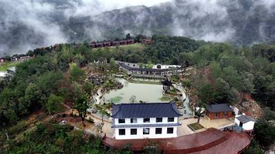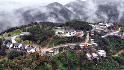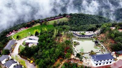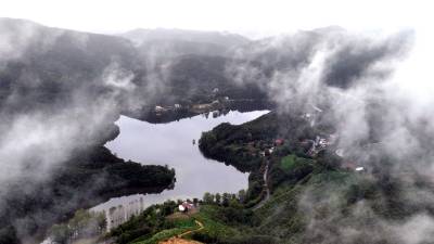 2025年10月11日,雨中的湖北省襄阳市南漳县李庙镇天池山,云雾缠绕,水墨丹青,一副中国风的美丽画卷展现在眼前。