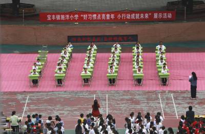 10月11日下午,湖北省竹山县宝丰镇施洋小学操场上一派朝气蓬勃的景象。为帮助低年级学生尽快适应校园生活,夯实养成教育基础,营造和谐有序的育人环境,学校隆重举行一二年级“入学教育暨行为习惯养成教育”展示活动。此次活动以“好习惯点亮童年,小行动成就未来”为主题,一二年级共12个班级全体师生以班级为单位参与了团体展示。