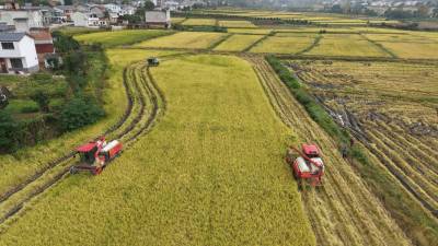 抢抓雨歇收水稻