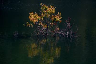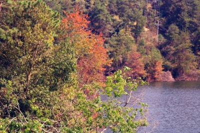 10月12日,位于大别山深处鄂皖交界之处的英山县杨河水库,一幅色彩与光影编织的画卷扑面而来。 枫叶渐红,松柏苍翠,空气格外清新、秋水显得格外清澈,阳光洒在水面上,泛起粼粼波光,湖边的树木倒映其中,红的、黄的、绿的颜色在水中交织,形成一幅流动的油画,宛如一块镶嵌在大山深处的绿色宝石,美如画卷。