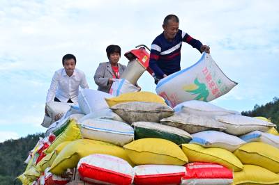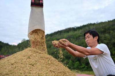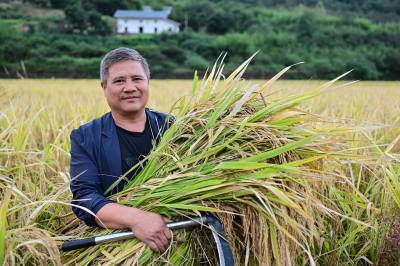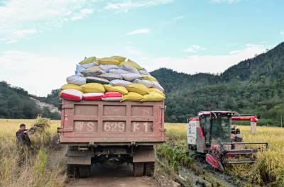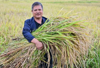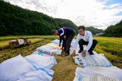 竹山县擂鼓镇抢收富硒晚稻(客户端采稿)