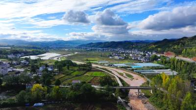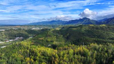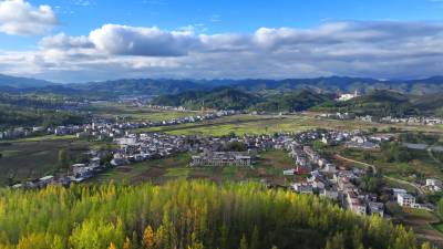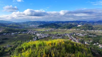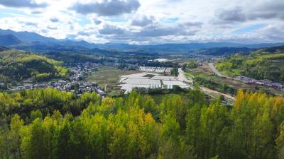 2025年10月15日,十堰市房县化龙堰镇秋色宜人,金色与绿色相映成趣,宛如大地铺上了一条不规则的彩色地毯,错落有致的村庄与远山相映成趣,蓝天白云下的乡村披上了色彩缤纷的盛装,乡村秋色美不胜收。