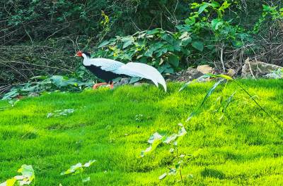10月15日,鄂州市杜山镇三山村龟头湾,一只白鹇在山间,或悠闲漫步、或低头啄食、或展翅飞翔,其优雅身姿与周边的自然景致完美融合,美不胜收。近年来,三山村持续加大生态和森林资源保护力度,改善水域生态环境,为众多野生动植物营造了良好的生存空间。据悉,该村将依托得天独厚的生态资源和区位优势,设立白鹇观鸟点,打生态旅游牌,使之成为拉动当地观鸟特色服务产业发展的一张新名片。白鹇是国家二级重点保护野生动物,被人们美誉为“白凤凰”、“林中仙子”。视界网