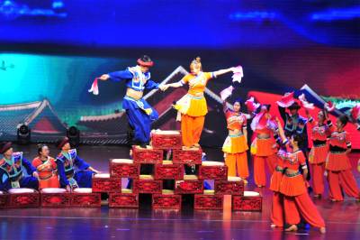 2025年10月17日晚,在宜昌市夷陵区文化中心剧场,演职人员展演文化惠民文艺节目,让群众在“家门口”观赏视听“盛宴”,感受传统文化魅力,共享多彩文化生活。