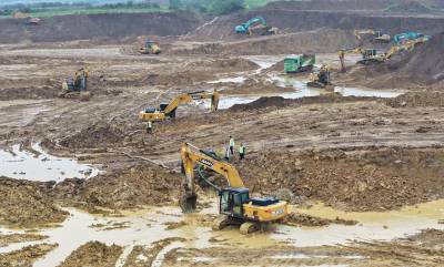 面对场地复杂、持续30多天的阴雨连绵等难题,各方积极应对。如供电部门6个工作日实现临时基建用电通电;党员干部勇挑重担,2天完成关键征地工作,7天7夜挖通临时沟渠。
