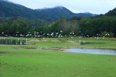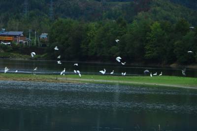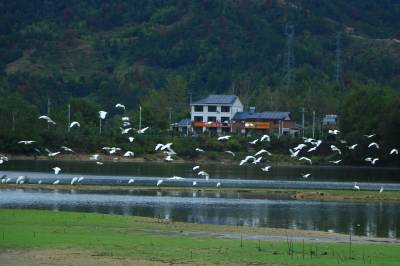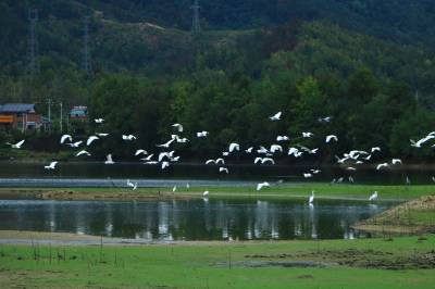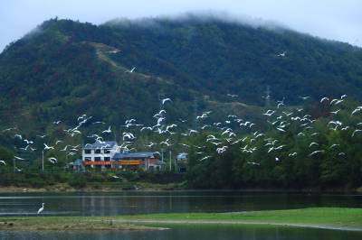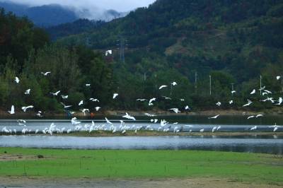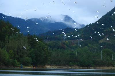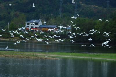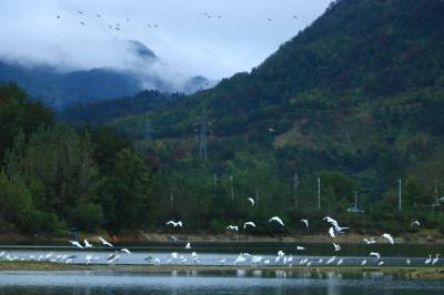 2025年10月19日,在白莲河上游的湖北省英山县方家咀乡四棵枫村,这里水质清澈,生态优良,是白鹭的天堂,只见成百上千只的白鹭在水面上翩翩起舞,或低空盘旋,或轻点水面,构成了一幅生动的生态画卷,成为观鸟爱好者和摄影发烧友的“打卡圣地”。