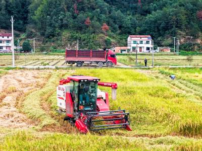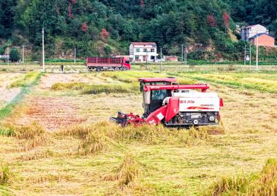 湖北英山:迎战阴雨天 稻谷抢收忙