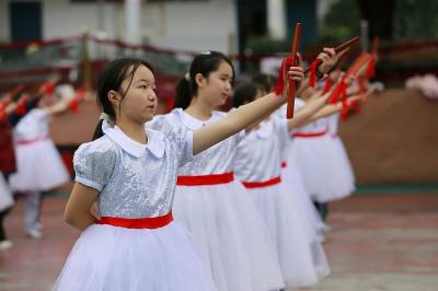 据施洋小学负责人介绍,学校近几年来大力推进“红色文化进校园”工程,不仅将红色教育融入课堂教学,还通过快板、情景剧等学生喜闻乐见的形式,让红色文化可感可知。“学一学做一做,校园处处换新颜”已成为校园的真实写照。