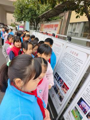 戏曲节目表演完毕,孩子们按班级有序的参观了“非遗知识长廊”,图文展板详细介绍湖北越调的历史渊源、县内非遗项目的传承故事。
