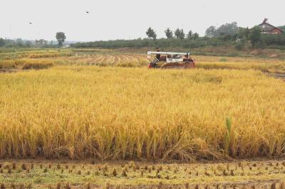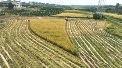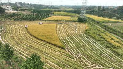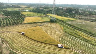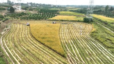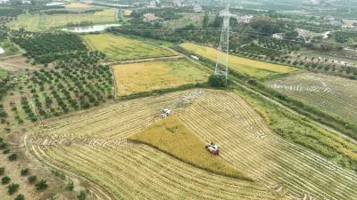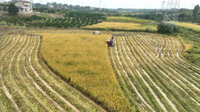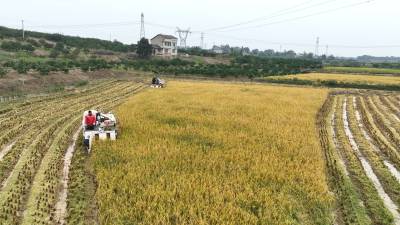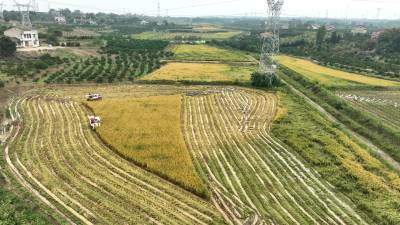 10月22日,枝江市五家畈农机专业合作社社员正在抢收二季晚稻。霜降时节,农民朋友抢抓农时在田间地头忙碌秋收、秋种、秋管、秋防等工作。视界网刘卫东摄