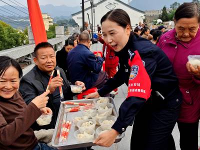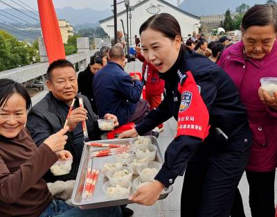 2025年10月22日,在湖北省宜昌市秭归县茅坪镇陈家冲村,“警村联动,情暖重阳”活动给当地60岁以上的老人带去贴心的关爱。秭归县公安局一束光志愿服务队当天联合该村开展的“警村联动,情暖重阳”活动,既有好戏连台的文艺演出,又有聚焦老人防骗防交通事故的有效抢答;既有医生现场为老人提供义诊服务,又有志愿者现场为老人免费理发;既有摄影师现场为老人免费拍摄幸福留念照,又有“老人都说好”的包饺子、吃饺子。温馨无比的活动现场,老人们一个个成了快乐的老小孩。