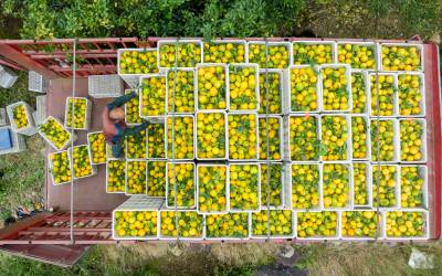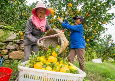 10月22日,宜昌市秭归县两河口镇,200亩秭归秋橙丰收采摘。 金灿灿的秭归秋橙果实硬度好、口感脆甜,平均糖度达12%以上。因每年10月中下旬成熟,早于秋季九月红脐橙晚于夏季夏橙上市,俗称“特早”脐橙,成为时下市场稀有的脐橙鲜果,填补了当下秭归脐橙鲜果空档期,深受市场欢迎,助力秭归脐橙从“四季有鲜橙”迈向“月月有鲜橙”。