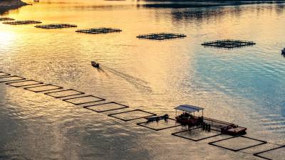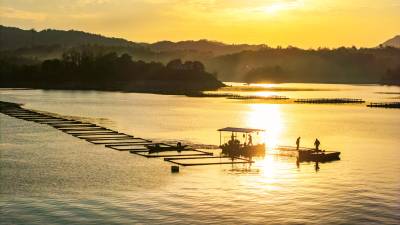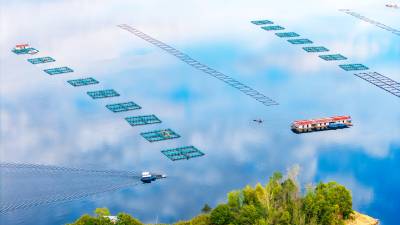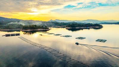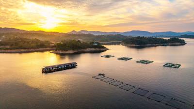 2025年10月24日,在湖北省黄冈市白莲河水库水域,一个个水产养殖网箱整齐排布,养殖户驾船在网箱区域忙碌,呈现出一幅生态养殖与碧水蓝天相融的现代农业图景。近年来,白莲河水库深入践行“绿水青山就是金山银山”理念,立足保护生态资源,人放天养的原则,科学合理放养净化水质的鲢鳙等特色水产生态养殖,推动环境提升、产业增效、农民增收,走出了一条生态与经济协同发展的绿色之路。