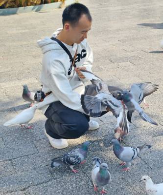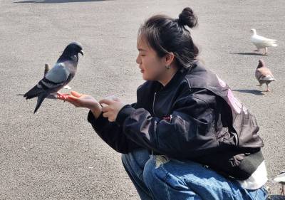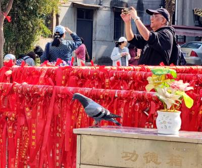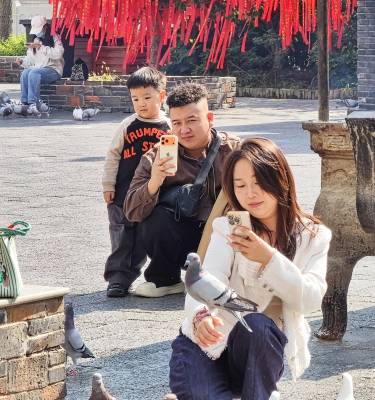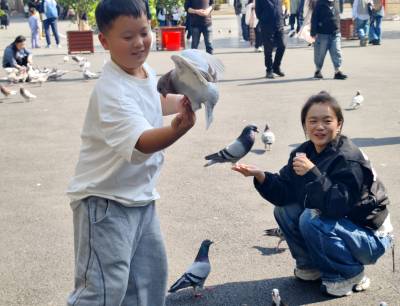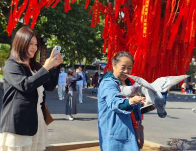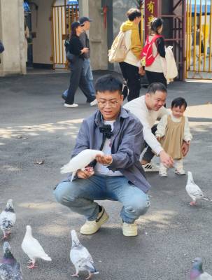 > 武汉:古德寺和平鸽与市民游客互动吸引人