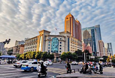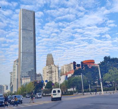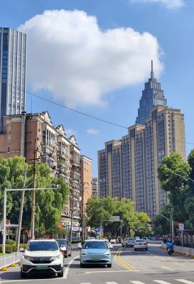 武汉市进入农历廿四个节气的霜降前后,天气睛好,蓝天白云,引人注目。